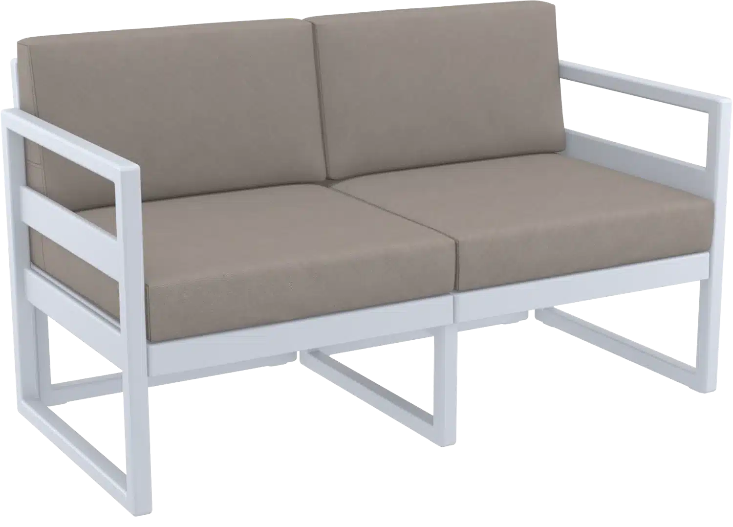 FL Mykonos Hospitality Outdoor 2 Seater Lounge with Cushion – Silver Grey / Light Brown