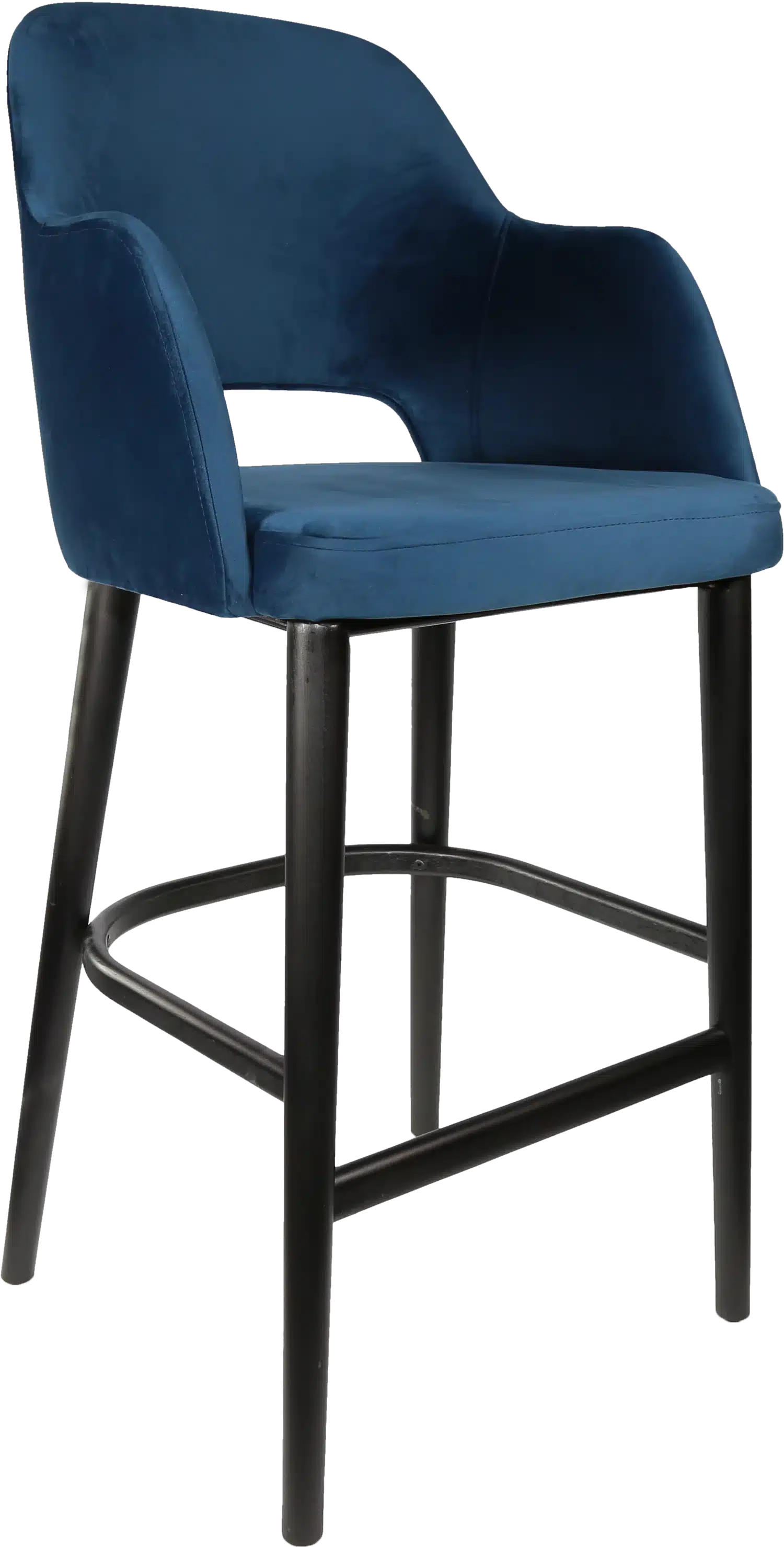 FL Sorbet Velvet Upholstered Timber Legs Hospitality Barstool – Denim / Black