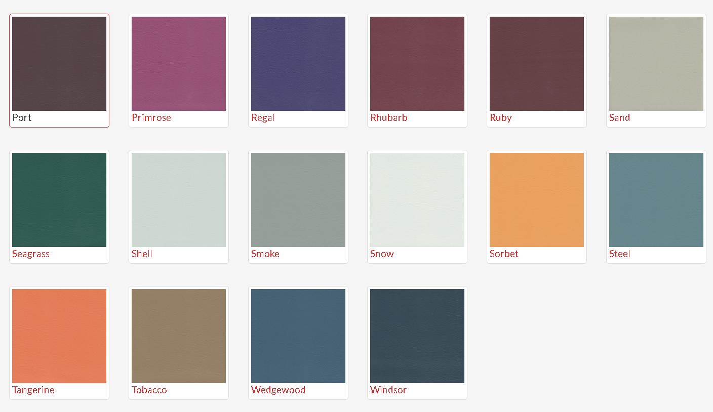 - Available Options: House Fabric, Think Plus Fabric, Pacifica Standard Vinyl and Studio Encore Vinyl. Refer to the colour swatch.