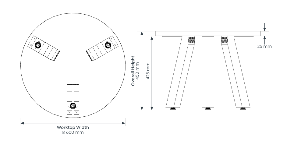 The Round coffee table has a 600mm round top with a flat disc base that sits flush to the floor.