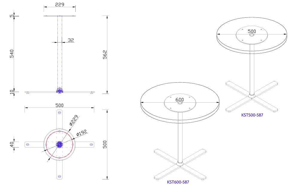 - Suitable Table Top Dimension: 500-600 mm Dia