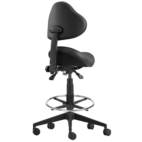 Features Adjustable seat height Adjustable back height Adjustable seat and back angle Saddle seat 640mm black nylon base Available in black PU only Minor assembly required Suitable for indoor use only 5 year warranty Weight limit is 120kg